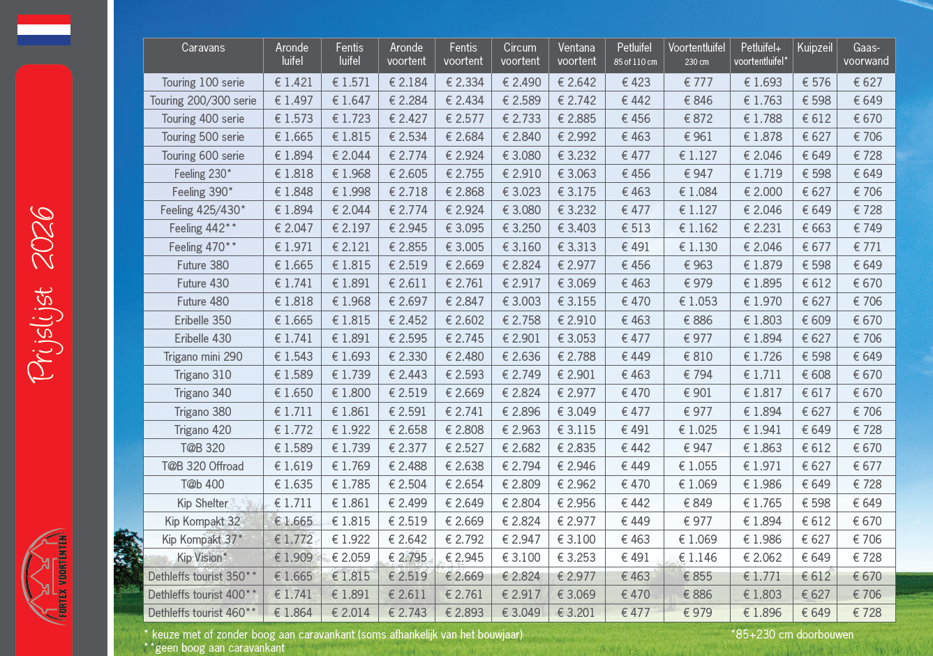 Heeft u een aërodynamische caravan of een hefdakcaravan? Een voortent of luifel van Fortex wordt zonder problemen op maat voor u gemaakt!